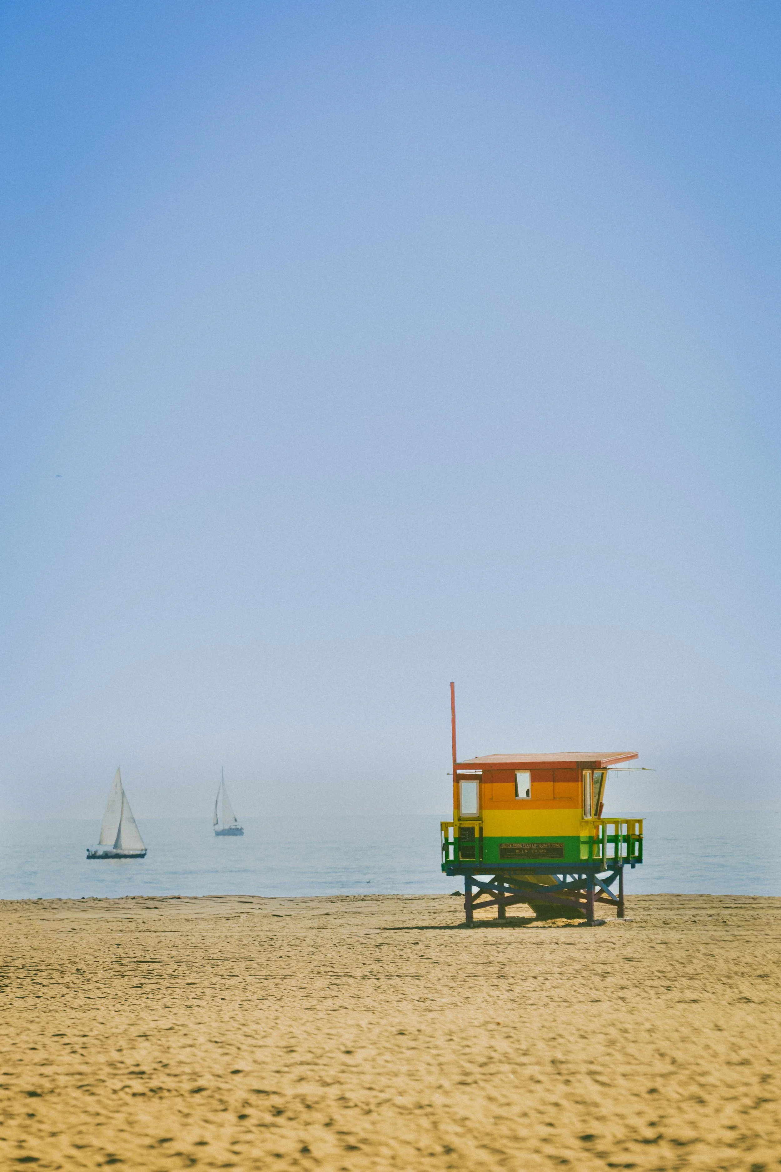 We spent hours wandering along the shoreline and through the colorful pockets of Venice that make it such an iconic destination. Lifeguard towers stood brightly against the soft blues of the Pacific, sailboats drifted quietly in the distance, and every corner seemed to offer something unexpected—street art, architecture, or simply a moment worth capturing. Venice doesn’t ask you to rush; it invites you to observe.